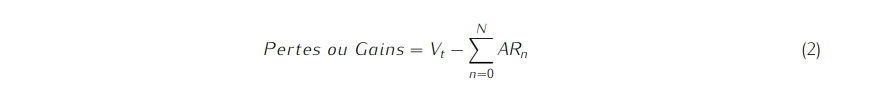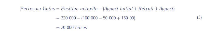 Pour calculer les pertes ou gains à la date t, il faut soustraire la somme des apports/retraits réalisés à la valeur du portefeuille à la date t, soit :