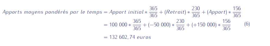avec, ji, le nombre de jours entre le moment de l’apport/retrait et la fin de la période et T le nombre de jours total sur la période.