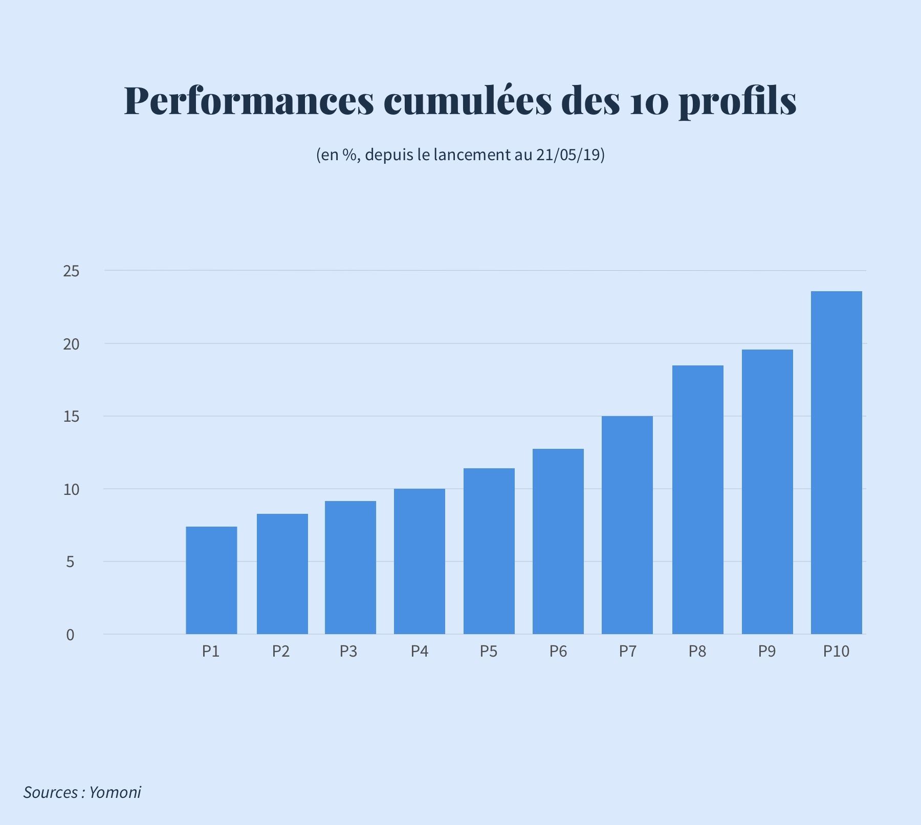 Cette approche a été mise en œuvre dès le lancement de notre activité en 2015. Même si l’historique dont on dispose est encore relativement court (un peu moins de quatre années - date de lancement de nos profils au 01/09/2015), il peut être intéressant de vérifier si le comportement des 10 profils correspond bien aux objectifs fixés à priori.