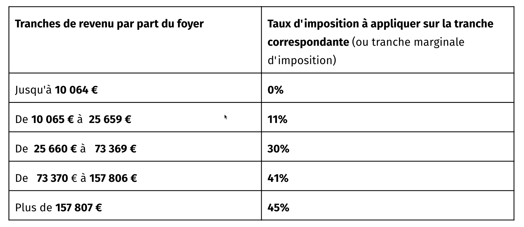 Vos revenus contenus dans cette tranche sont alors imposés à votre Taux Marginal d’Imposition.