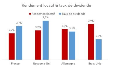 La performance nette de l’immobilier sera donc probablement nulle alors que les actions mondiales pourraient livrer une performance annuelle supérieure sur les prochaines décennies. En effet, en 2015 de nombreuses actions offrent un taux de dividende supérieur au rendement locatif brut des grandes villes françaises. Avec un taux de 3.4%, le CAC40 dépasserait Paris. Trois périodes ont connu une telle situation depuis 60 ans : en 1974, 1977-82, et 1988-92 et dix ans plus tard, le capital immobilier initial (loyer inclus) s’était à chaque fois rétréci de moitié vis-à-vis d'un investissement en actions, avec une sous-performance annuelle de 7% par rapport à celle des marchés financiers !