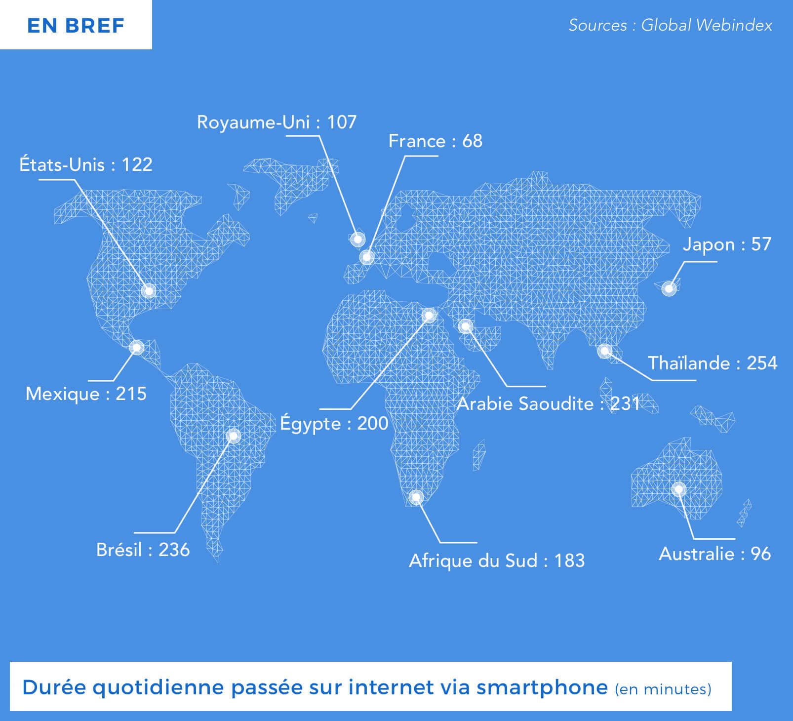 L’auteur de ces lignes consulte en moyenne plus de 50 fois son téléphone et reçoit plus de 200 messages électroniques durant sa journée (e-mails, textos, etc.). Si on rapporte le tout au nombre de minutes dans une journée d’éveil, on obtient des séquences d’attention d’environ 5 minutes. Renseignements pris, il s’agit peu ou prou de la moyenne des détenteurs de smartphones, qui passent quotidiennement deux à trois heures sur leur portable, réparties en 150 consultations environ. Il y a vingt ans, nous étions incrédules sur l’incapacité des jeunes américains à se concentrer plus que 7 minutes, soit la durée calibrée entre les spots publicitaires à la télévision. Nous voilà enfin à leur niveau, à nous l’American Dream !