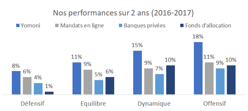 Nous nous positionnons en gestionnaire de patrimoine, car c’est notre métier depuis des années. L’emballage a changé (100% numérique), et le prix aussi (c’est moins cher !), mais notre équipe de gestion rassemble de professionnels qui oeuvrent dans des grandes banques privées internationales. Alexis, gérait les portefeuilles mis en gestion chez Barclays Wealth en France, et moi j’étais Directeur de la stratégie d’investissement pour l’ensemble de la banque privée de Société Générale, ainsi que le responsable de la gestion de comptes de grands clients suisses (>20M€).