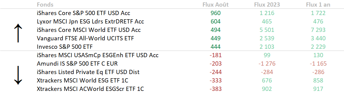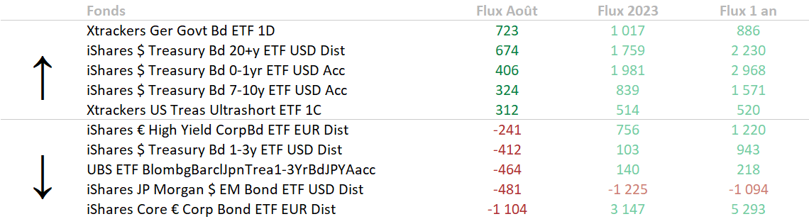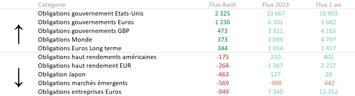 Flux du mois d'août pour les investisseurs européens.