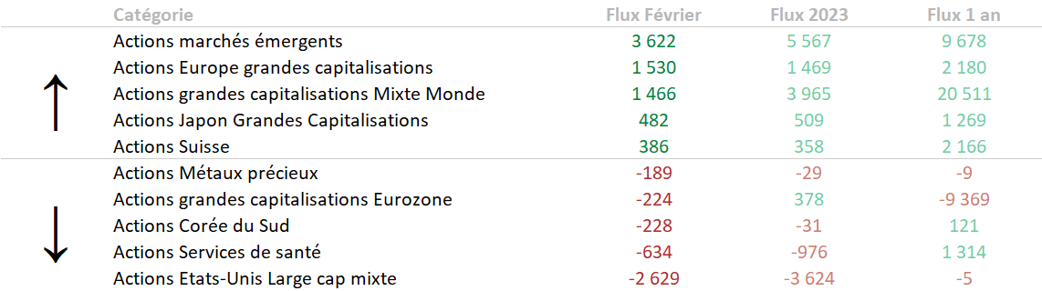 Flux du mois de février pour les investisseurs européens.