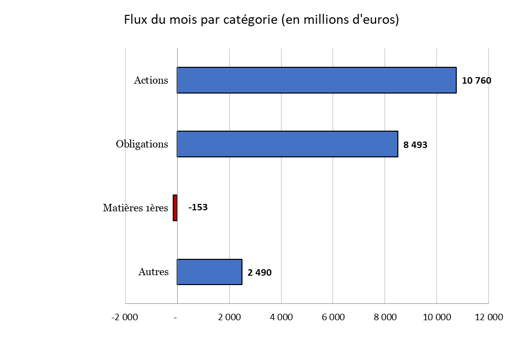 - Les flux ont été positifs pour les actions et les obligations, mais sont redevenus négatifs pour les matières premières.