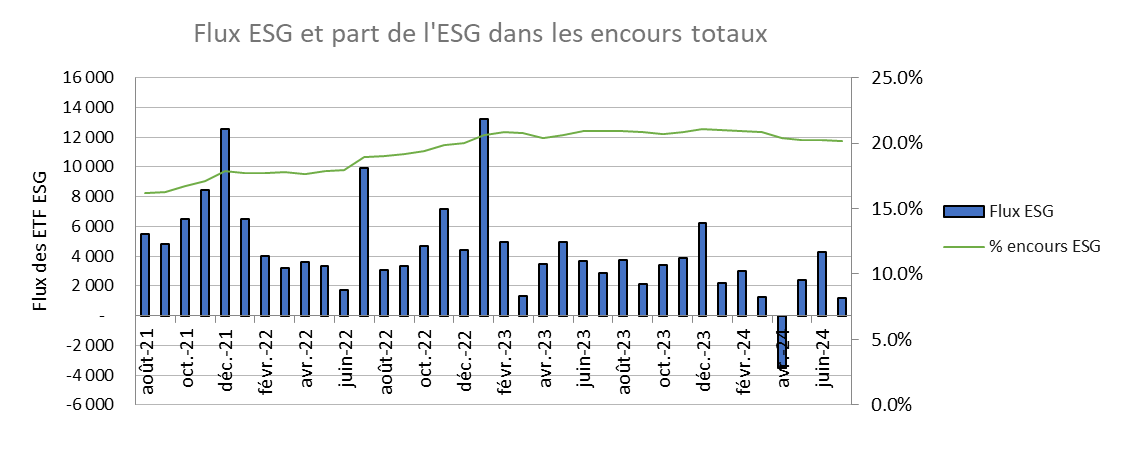 - La collecte sur les ETF intégrant des critères extra-financiers reste atone.