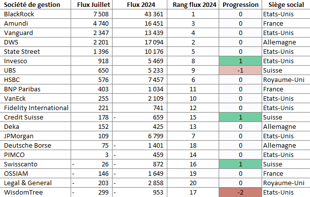 ⚡️ Flux par sociétés de gestion en juillet