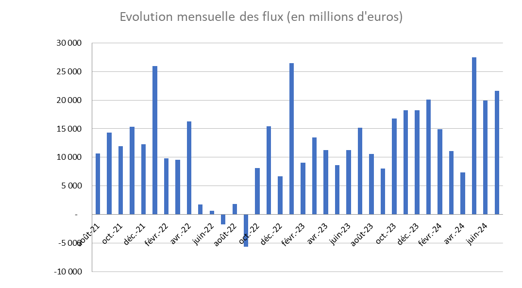 - La collecte sur les ETF en Europe a atteint 21,6 milliards d'euros en juillet, contre environ 15 milliards d'euros en juillet 2023, soit une augmentation de plus de 40%. Le rythme de collecte est donc resté très soutenu.