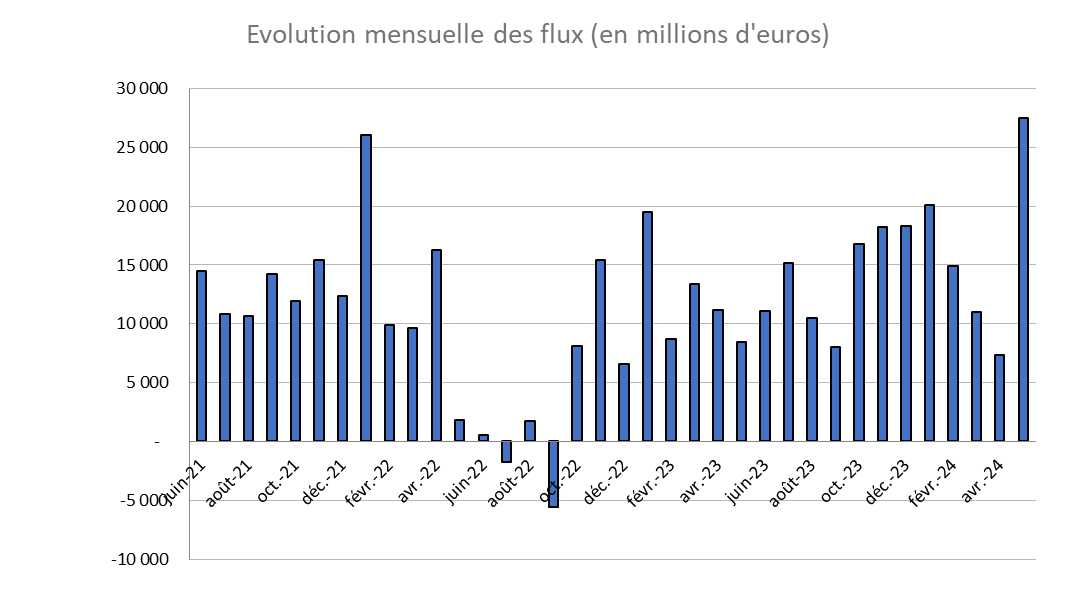 - Collecte historique pour le mois de mai avec 27,4 milliards d'euros de collecte nette. C'est le plus gros mois de collecte des trois dernières années.