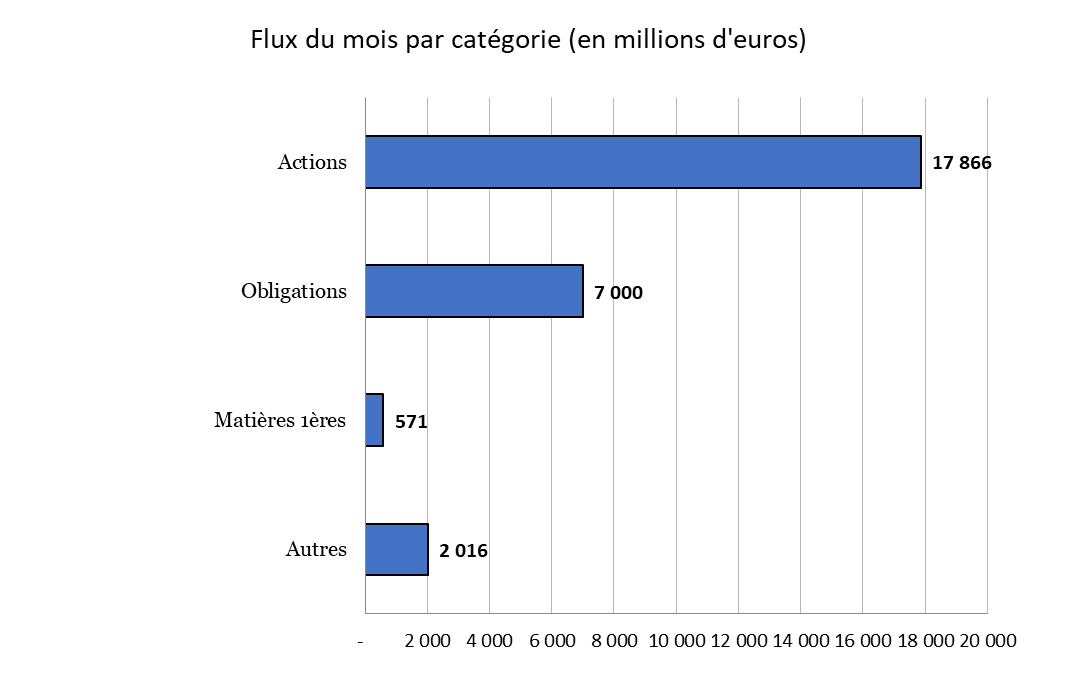 - 17,8 milliards d'euros de collecte nette sur les ETF actions. Pour retrouver une collecte supérieure, il faut remonter à janvier 2022, qui avait également été un mois exceptionnel, avec plus de 22 milliards d'euros de collecte.