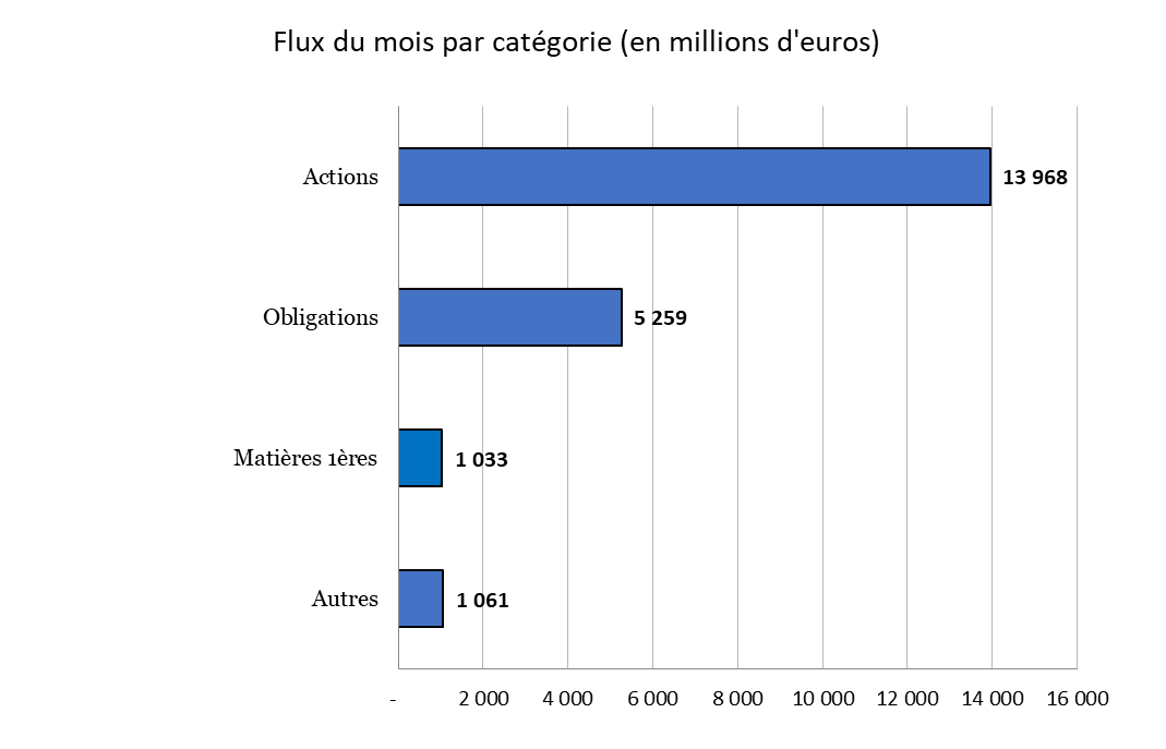 - Toutes les classes d’actifs ont néanmoins enregistré des flux positifs, les ETF actions concentrant la majorité des souscriptions.