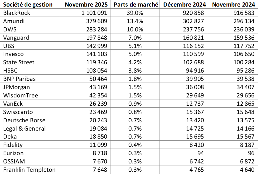 - BlackRock domine une nouvelle fois le marché européen, confirmant sa position de leader incontesté.