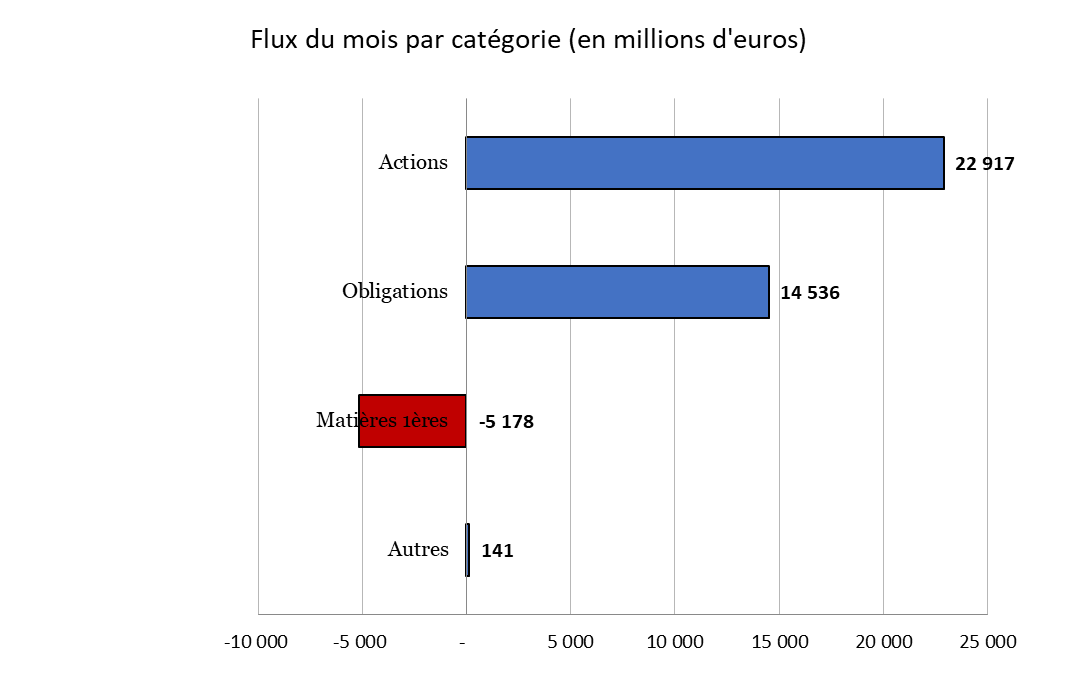 - Les actions et les obligations enregistrent des collectes fortement positives, avec un nouveau record pour les ETF obligataires.
