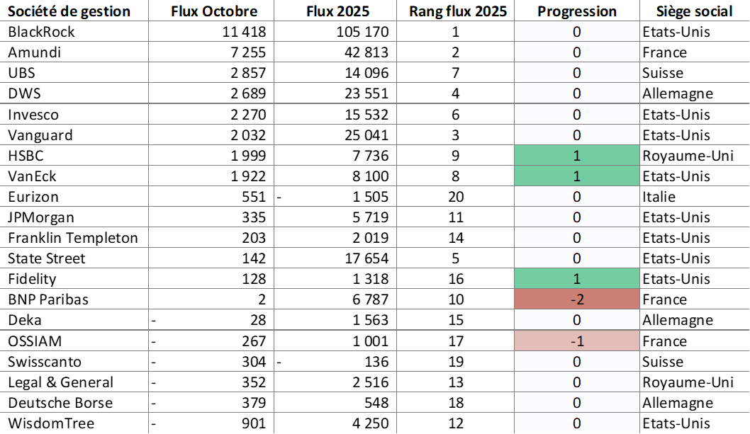 - Vanguard, très bien positionné en 2025 où il se classe troisième en cumul annuel, se contente de la sixième place sur le mois.