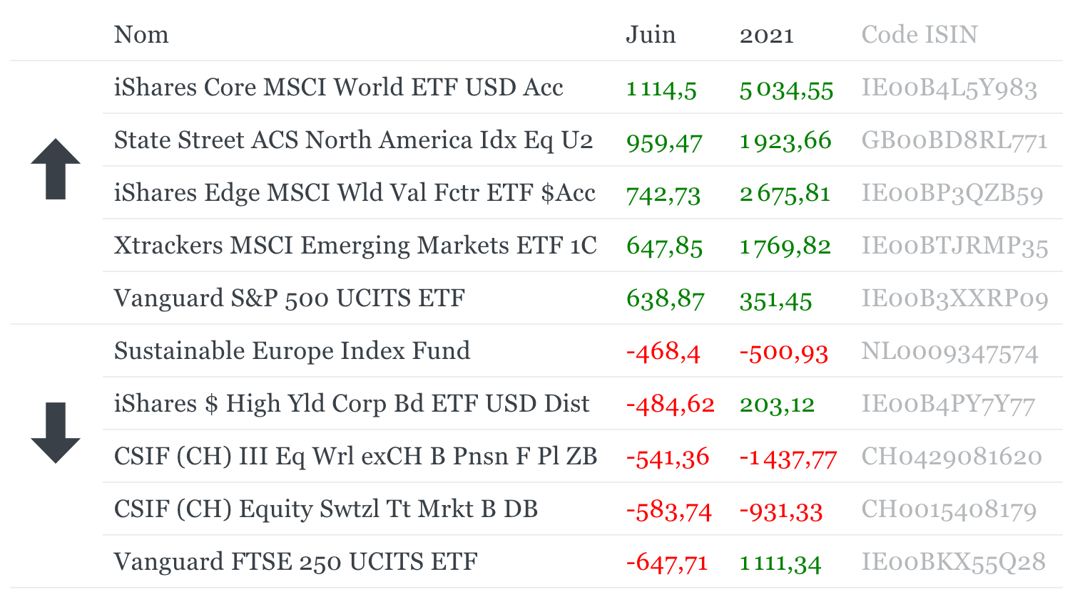 Deux ETF du top cinq sont gérés par BlackRock, iShares Core MSCI World et iShares Edge MSCI World Value Factor.