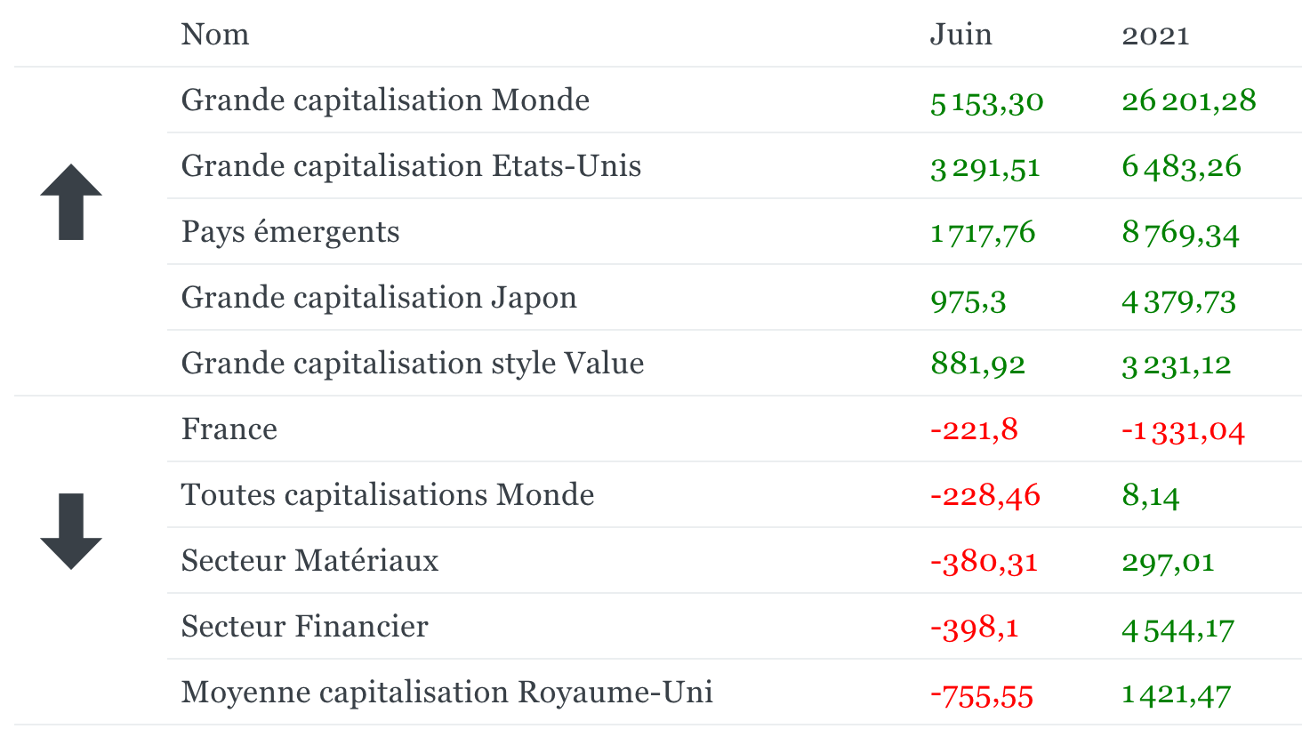 Flux au mois de juin pour les investisseurs européens.