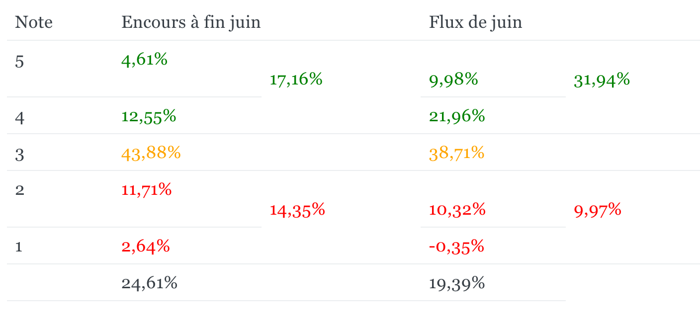 Ce mois-ci, près d’un tiers des flux en gestion indicielle ont été orientés vers des supports bien notés en matière de durabilité. La tendance s'accélère donc puisque 17 % des encours seulement sont positionnés sur des fonds bien notés.